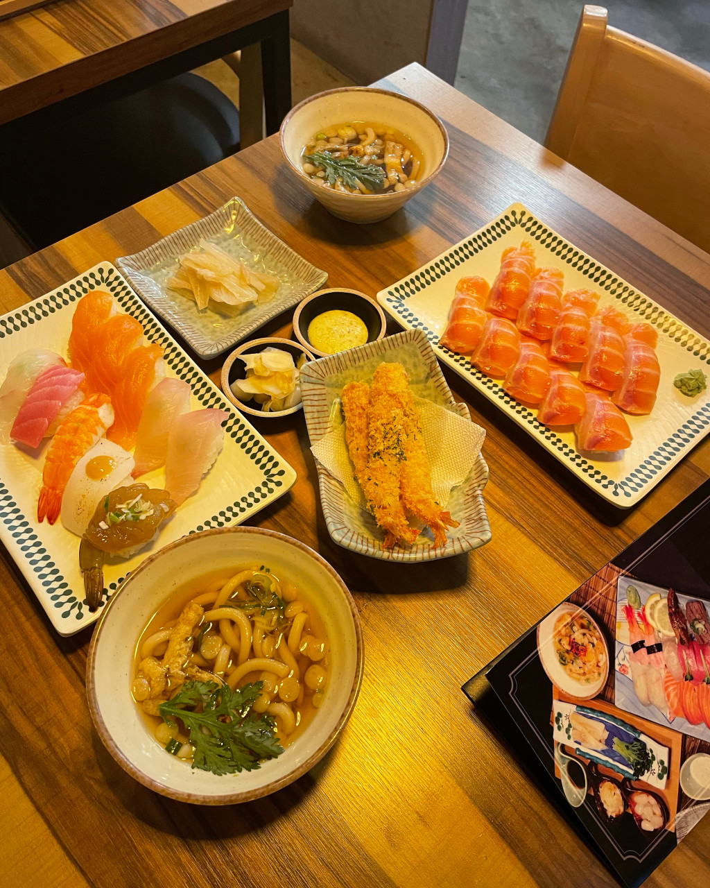 활어, 연어, 광어, 참치, 장새우, 소고기 등 골라먹는 재미가 있는 다양한 종류의 초밥 12피스에 미니우동, 튀김까지 강남역에 이런 가성비는 없었다!